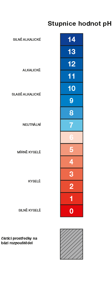 Neutrální čistící prostředky jsou vhodné na vodou rozpustné nečistoty na citlivých materiálech, jako je hliník, plasty, koberce, čalounění nebo eloxované okenní rámy.