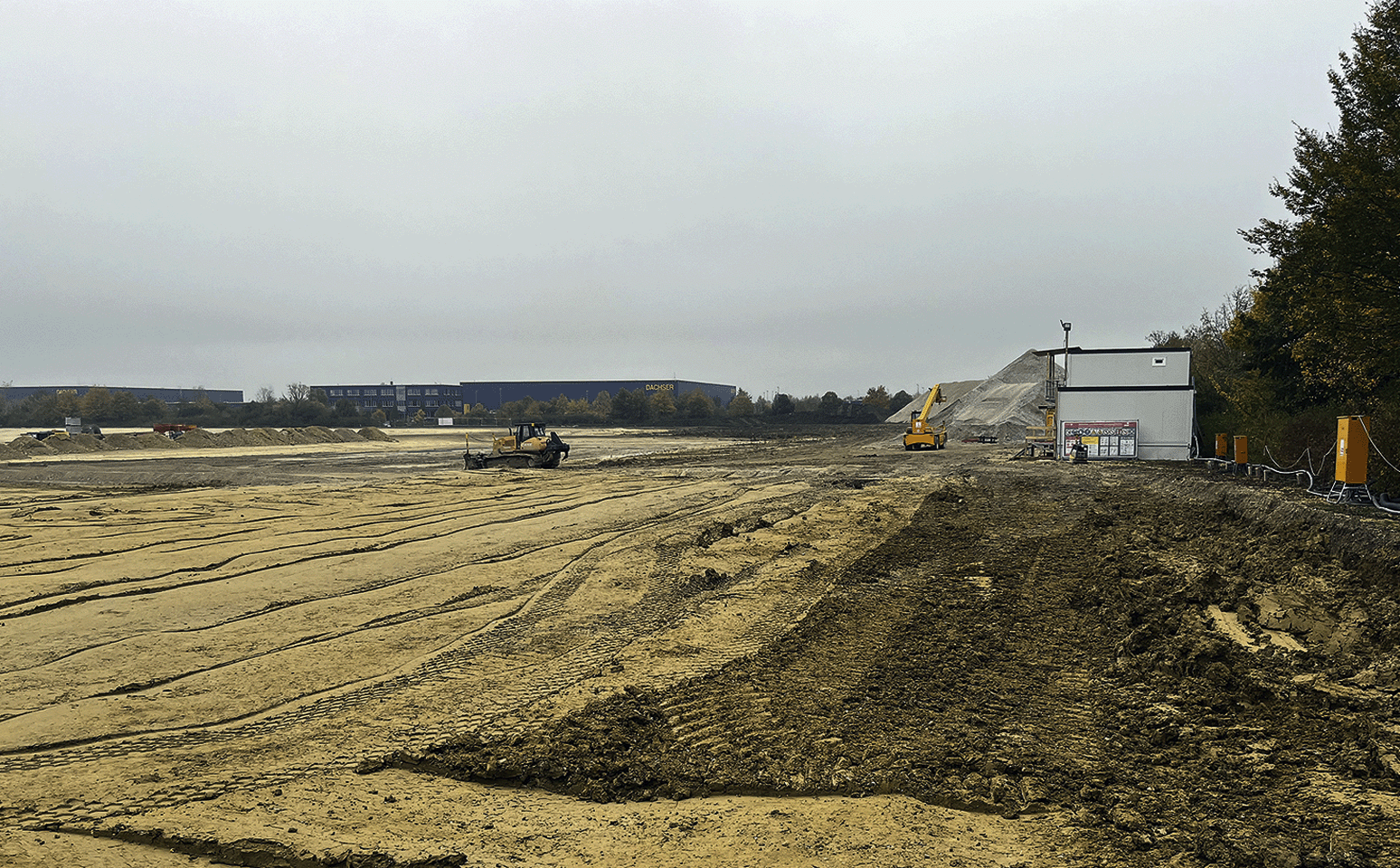 Im November werden die vorbereitenden Arbeiten auf dem Gelände konsequent fortgesetzt. Die vorbereiteten Flächen, die laufenden Erdarbeiten und die ersten befestigten Bereiche zeigen, wie das Bauvorhaben Schritt für Schritt vorankommt.