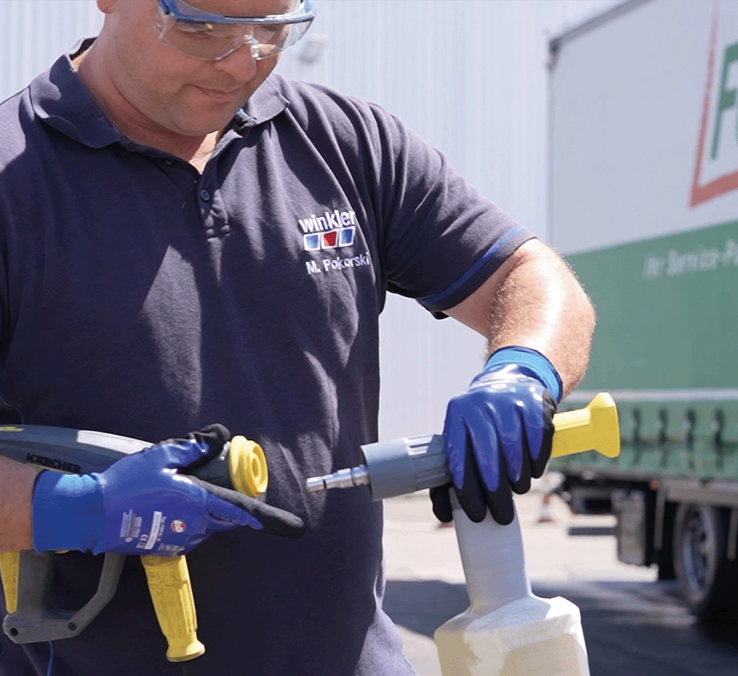 Der winkler Fahrerhaus- und Planenreiniger löst beispielsweise Verschmutzungen wie