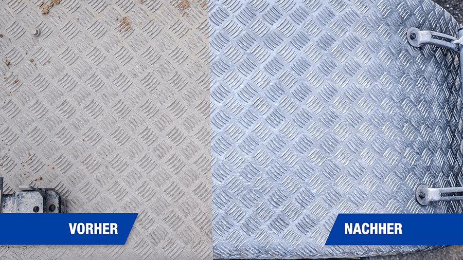 Ein echter Gamechanger in der Nutzfahrzeugpflege: Der winkler Felgenreiniger Sauer Spezial eignet sich auch hervorragend zur Reinigung von Aluminium-Riffelblechen, wie sie z. B. an Trittflächen, Werkzeugkästen oder LKW-Aufbauten verwendet werden.