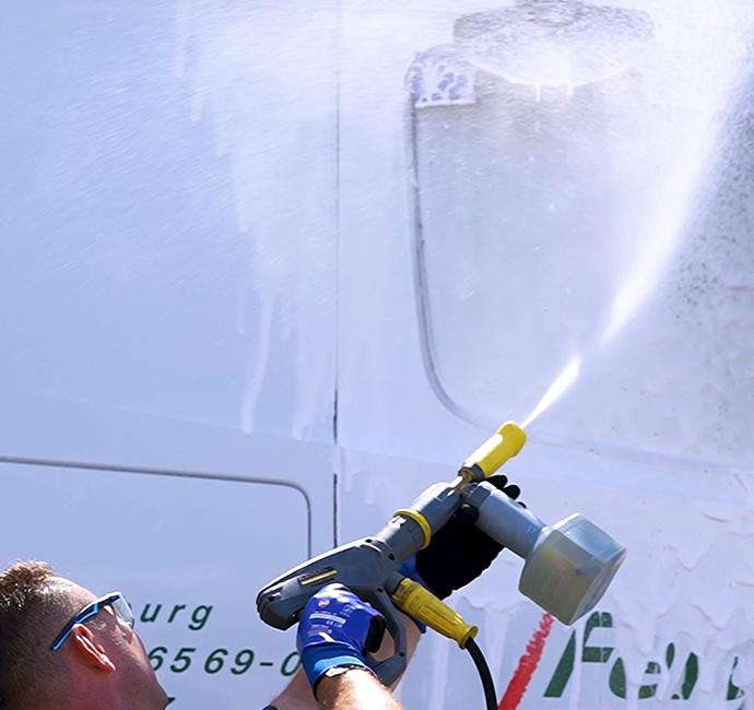 Der Glanzkonservierer GlossTec® punktet nicht nur mit hervorragender Leistung, sondern auch durch seine Vielseitigkeit. Er kann in SB-Waschanlagen, Portalwaschanlagen und Waschstraßen verwendet werden und eignet sich für jede Art von Nutzfahrzeug – von Lkw über Transporter bis hin zu landwirtschaftlichen Maschinen.