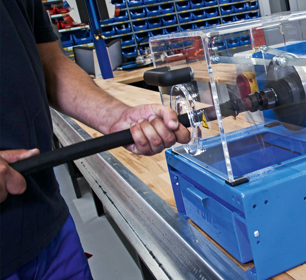 Ob Hydraulik-, Tank- oder Siloschlauch: In unserer Schlauchfertigung verbinden wir fundiertes Fachwissen, modernste Fertigungstechnik und zertifizierte Qualität. Das Ergebnis sind Schlauchsysteme, auf die Sie sich jederzeit verlassen können. Wir bieten eine große Auswahl an Schläuchen, Anschlüssen und Armaturen, die für verschiedenste hydraulische Anwendungen geeignet sind. Unsere Spezialisten und Fachberater wissen genau, welche Komponenten ideal zusammenpassen, um Ihnen die beste Lösung zu garantieren. Jeder Schlauch wird in einem zertifizierten Prozess gefertigt und durch ein eindeutiges Labelsystem gekennzeichnet – für maximale Sicherheit und eine optimale Identifikation.