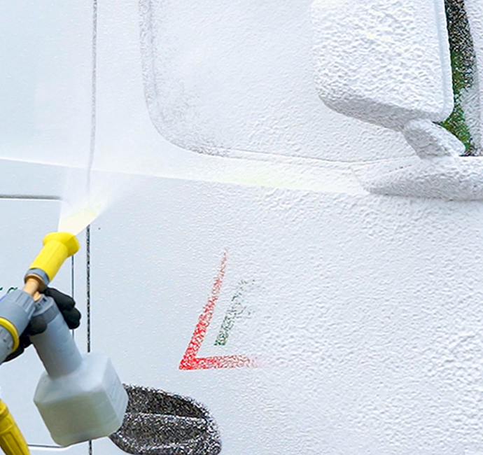 - Abspülen: Die angelösten Rückstände gründlich mit einem Hochdruckgerät entfernen.