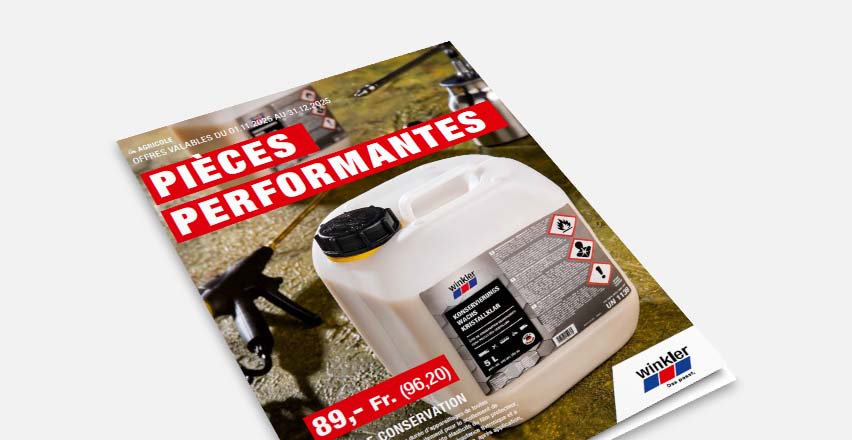 Jetez un coup d'œil à notre assortiment varié de plus de 1.300 pièces. Découvrez nos articles performants dans les domaines Cour & Atelier, Tracteur & Remorque, Pièces de connexion, Champs & Prairies et Élevage. Feuilletez sans attendre !