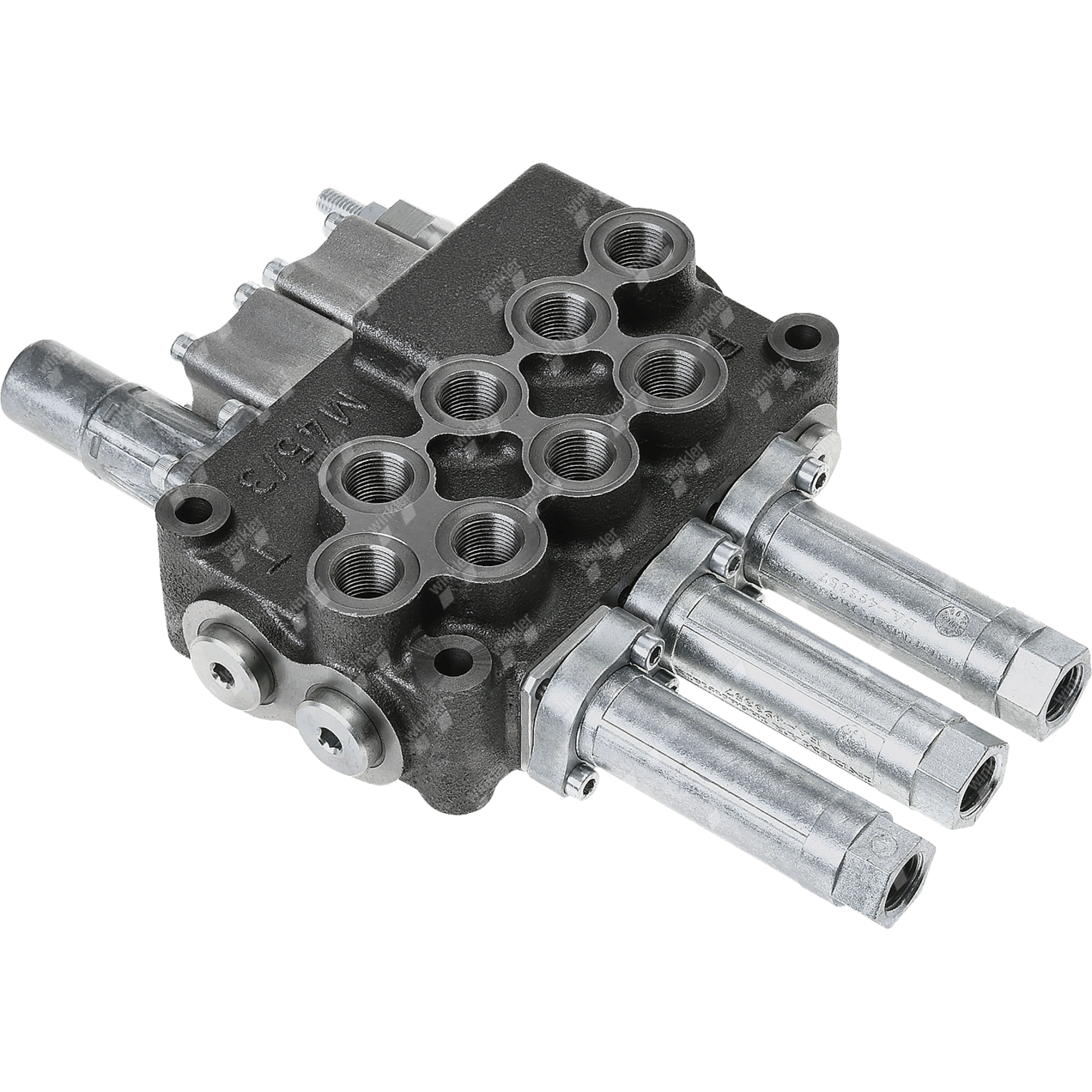Les superstructures de grues ou les transporteurs de voitures sont souvent équipés de deux blocs de commande ayant les mêmes fonctions. Le contexte est celui de la flexibilité de l'opérateur. Selon la situation, l'opérateur peut commander toutes les applications depuis l'avant ou l'arrière du véhicule. Mais selon la structure, différentes fonctions peuvent être commandées par la vanne monobloc correspondante. Pour économiser du matériel de conduite et des coûts de pose, le constructeur automobile intègre souvent les deux valves monobloc dans un circuit de pression et les connecte ainsi en série.