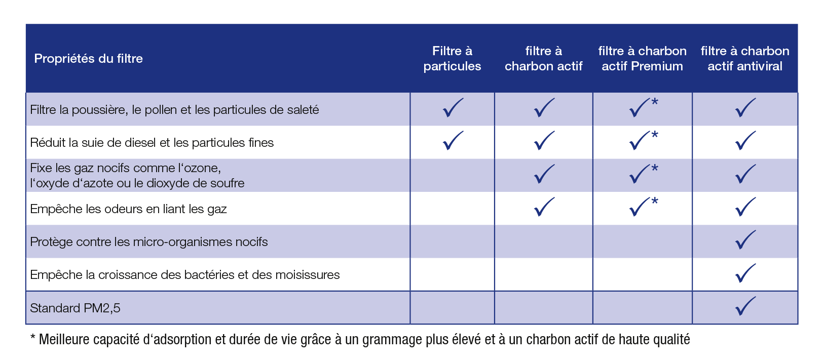 Chez winkler, vous trouverez des filtres à charbon actif antiviraux pour différentes marques de véhicules.