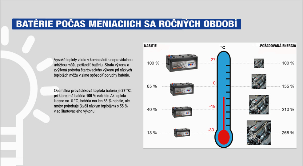 Dôležité je tiež čo najčastejšie dobíjať batérie (aspoň dvakrát ročne). Batérie úžitkových vozidiel sa vybíjajú častejšie a intenzívnejšie ako batérie osobných vozidiel. Preto im treba venovať väčšiu pozornosť.