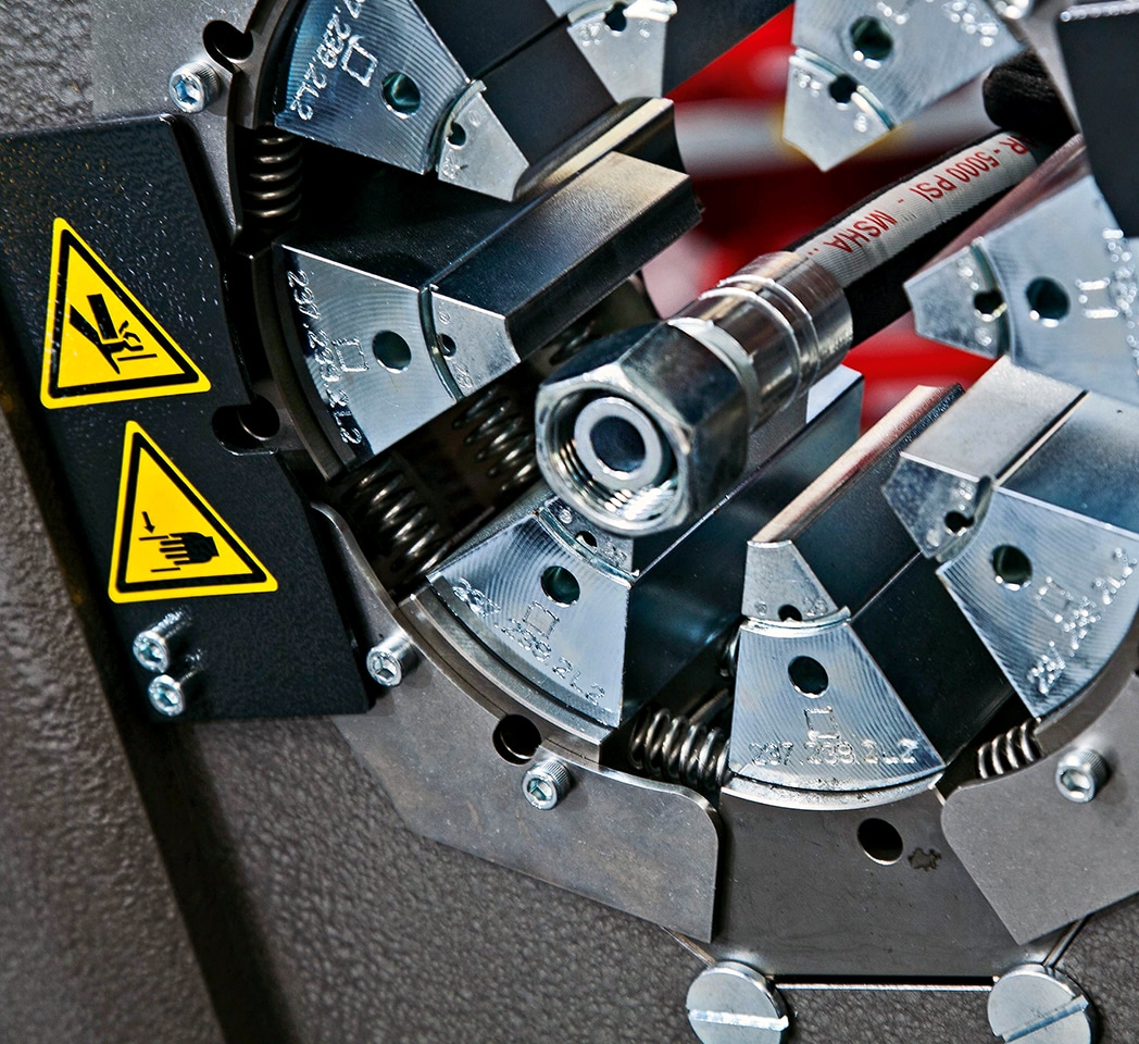 Mit Manometer, Ventilen, den richtigen Hydraulikschläuchen und anderem Hydraulikzubehör wird sichergestellt, dass die Schläuche Druck in der richtigen Höhe weitergeben, egal ob die Kraftübertragung dann in eine Radialbewegung oder in eine Linearbewegung mittels Hydraulikzylinder stattfindet.