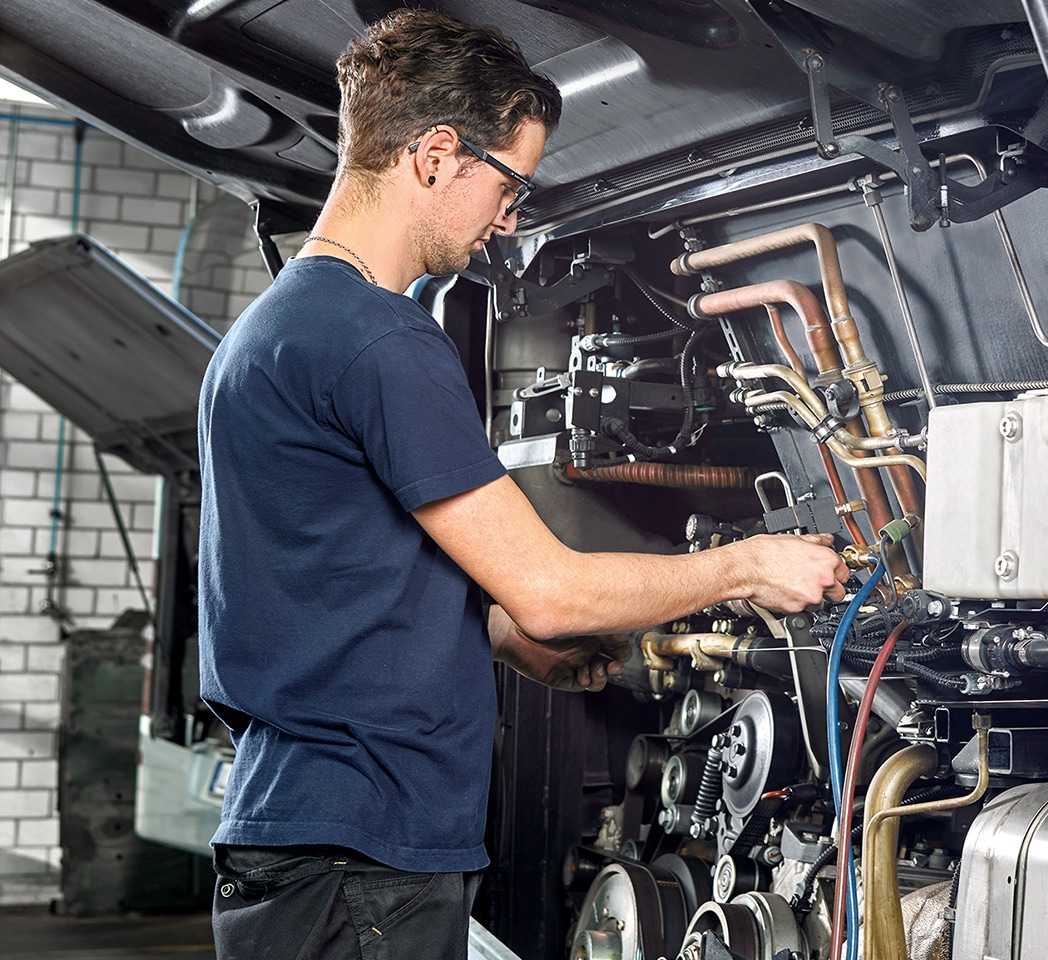 Das ist nur ein Beispiel dafür, warum moderne Klimaanlagen gepflegt und regelmäßig gewartet werden müssen, damit sie volle Leistung bringen können und über eine lange Lebensdauer hinweg funktionsfähig bleiben. Mit den geeigneten Geräten und praktischer Expertise können Sie als Omnibusunternehmen oder Omnibuswerkstatt viele Wartungsarbeiten selbst durchführen und damit Kosten und Zeitaufwand reduzieren.